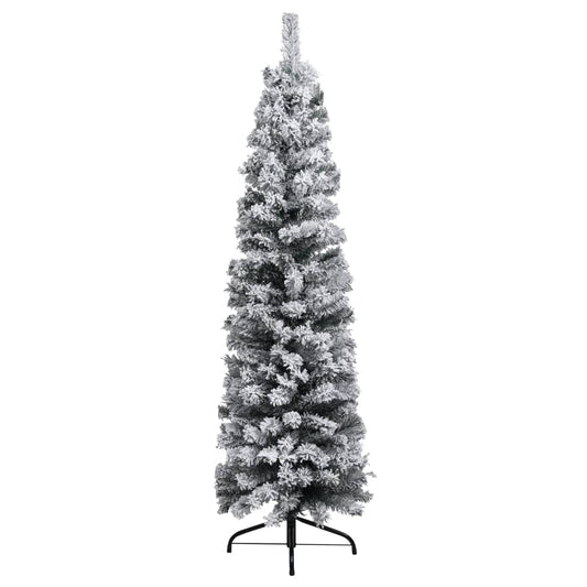 Künstlicher Weihnachtsbaum mit Schnee schmal PVC grün
