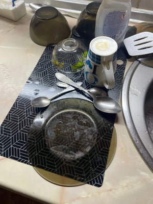 Spoel eenvoudig af met water of veeg schoon met een doek. De mat is vaatwasmachinebestendig.
