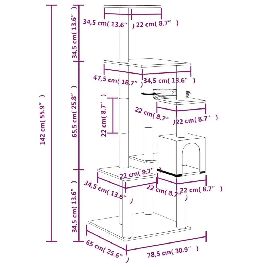 With this cat tree your feline friends will experience a touch of luxury! Your cats can scratch, climb, hide and rest on it.