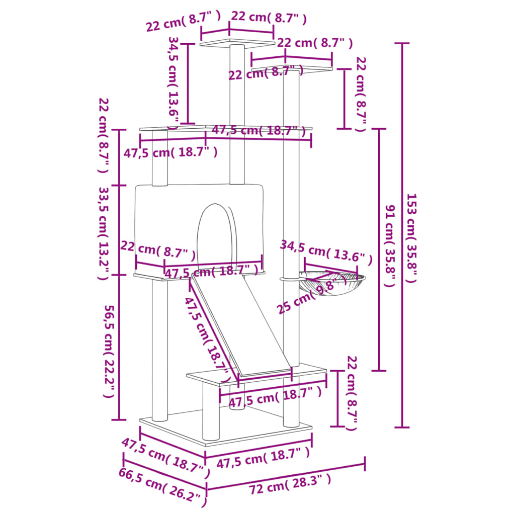 Cat furniture with sisal scratching posts 153 cm dark gray