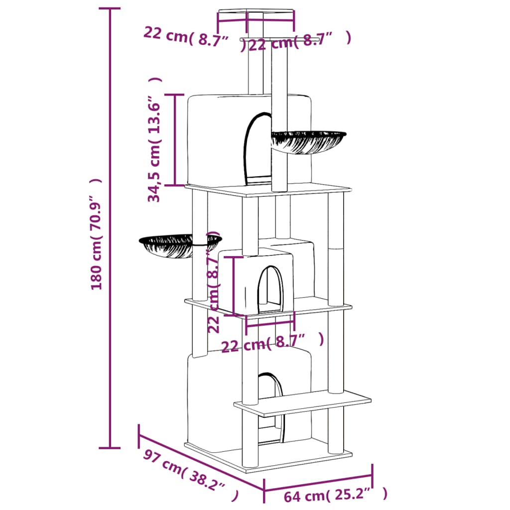 - All-in-one cat furniture: The multi-level cat furniture features 4 houses, 2 hanging baskets and platforms, providing your cats with a perfect place to climb, perch, scratch, hide and relax too.