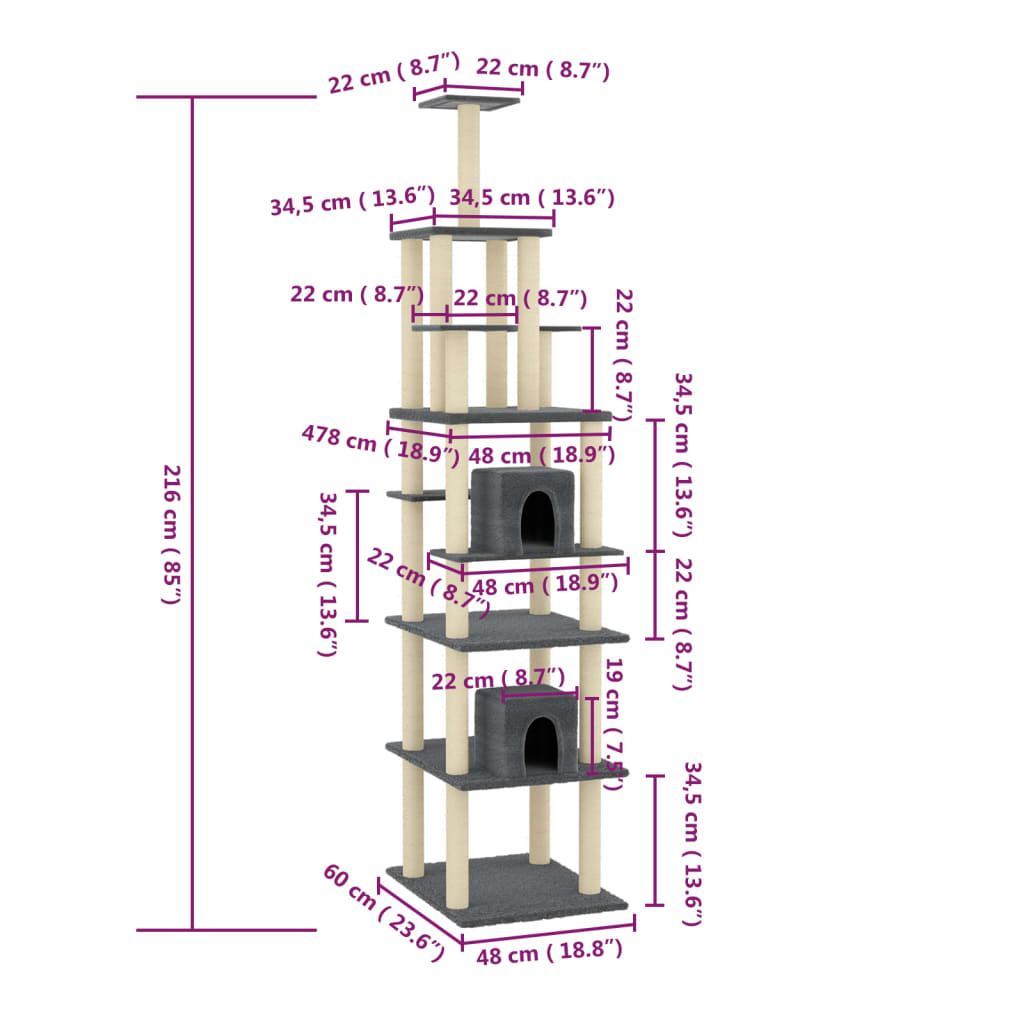 Cat furniture with sisal scratching posts 216 cm dark gray