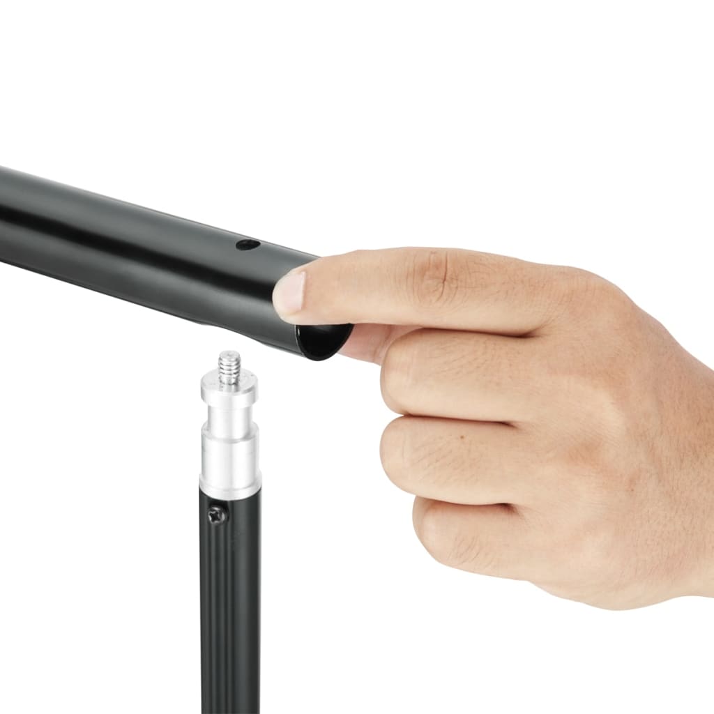 Een zwart katoenen achtergrond is inbegrepen bij dit systeem. Het systeem kan ook worden gebruikt in combinatie met andere achtergronden en/of papierrollen. Dit flexibele achtergrondsysteem is geschikt voor portretfotografie, commerciΓ«le fotografie en tafelfotografie.